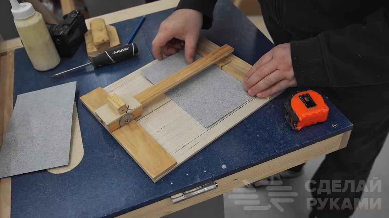 Данный способ очень быстрый и простой. И сначала необходимо установить брусок (рейку, доску) вертикально, зафиксировав ее струбциной или в столярных тисках.