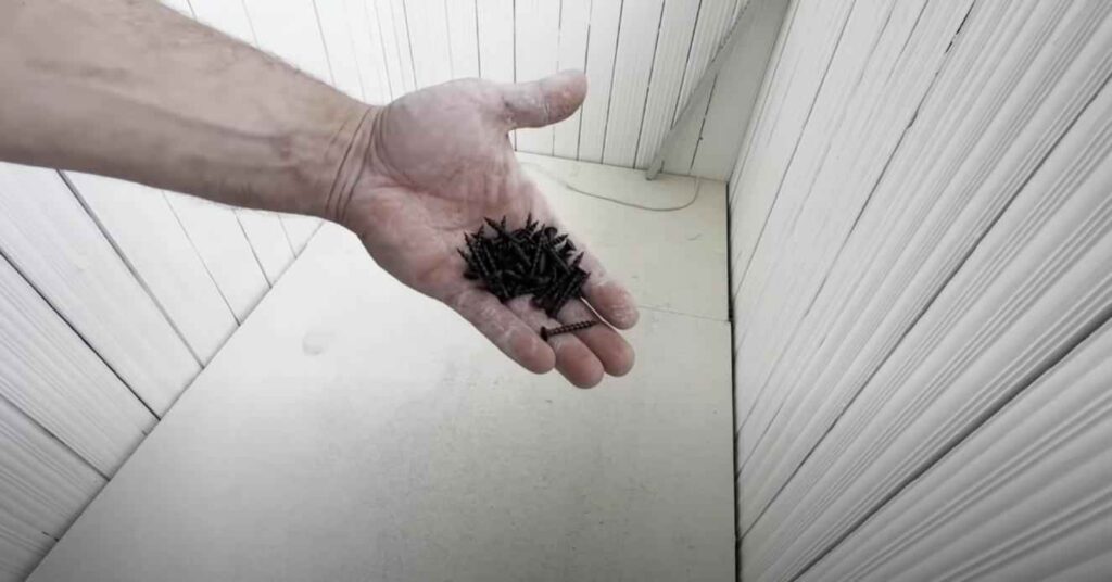 После того как уложен первый «слой» ГВЛ, сверху укладывается второй «слой» гипсоволокнистых листов. Затем стягиваем листы между собой с помощью саморезов.