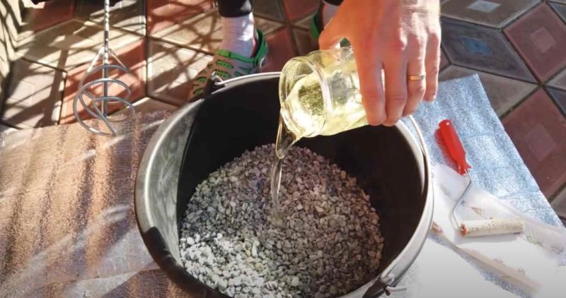 Берем цемент и песок в соотношении 1:1 и замешиваем раствор. Заливаем основание и формируем на поверхности стяжку.