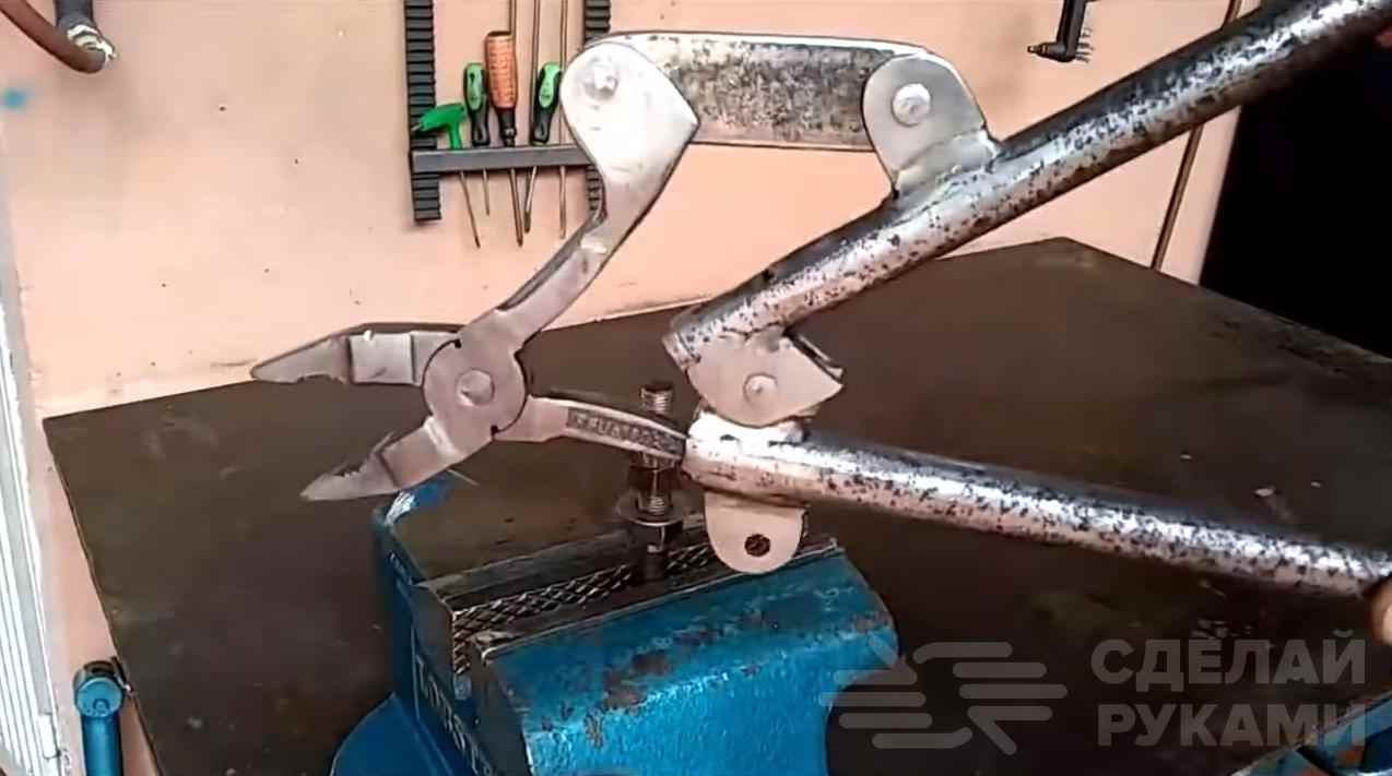 После этого автор изготавливает новые удлиненные ручки, которые выступают в данном случае в качестве рычага.