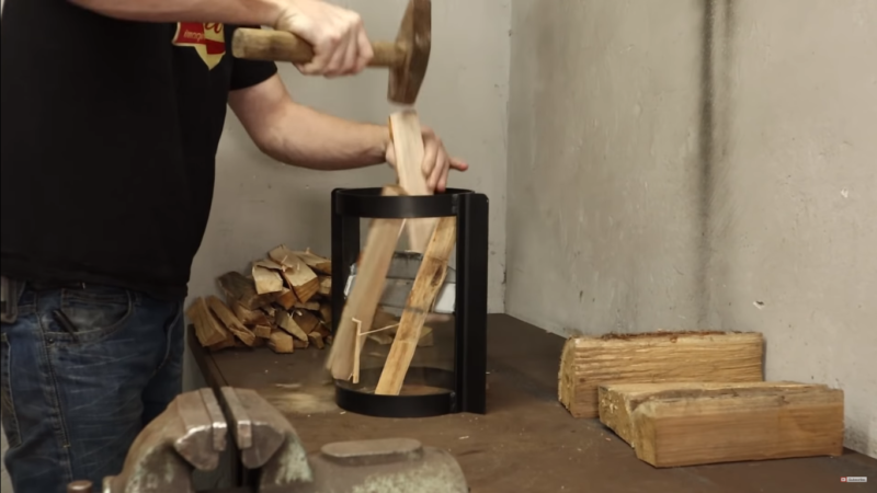 Подробно о том, как изготовить самодельный дровокол, а также принцип его работы вы можете посмотреть в авторском видеоролике.