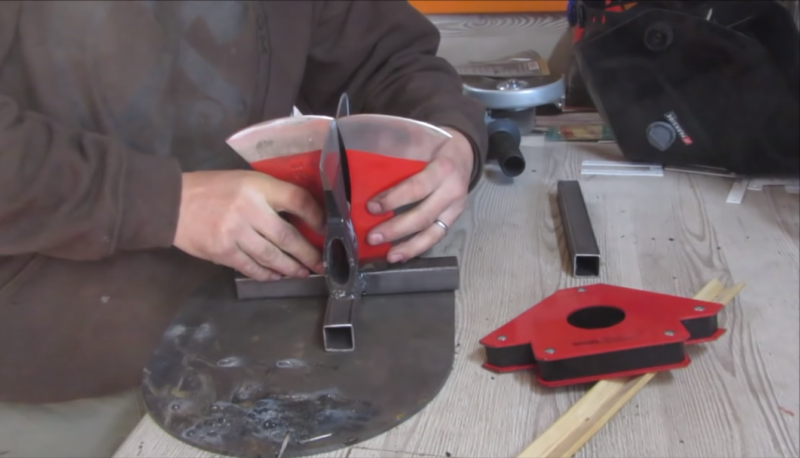 Например, чтобы не травмировать случайно пальцы, верхний квадрат из профиля нужно сделать меньшего размера. Сама конструкция должна получиться в виде усечённого конуса.