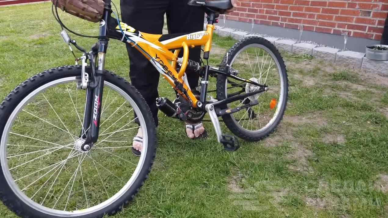 Первым делом снимаем с велосипеда переднее колесо. К нему автор приваривает звездочку.