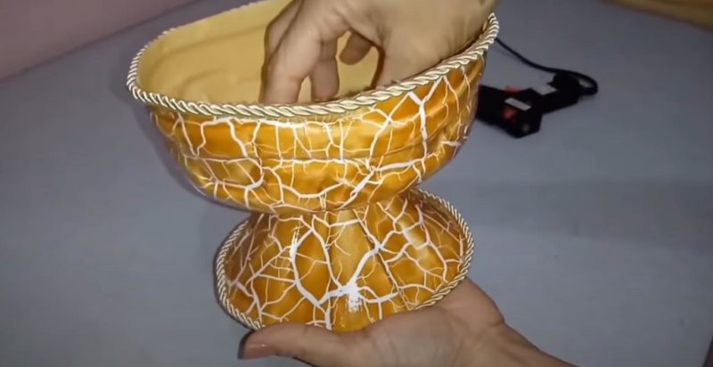 После застывания раствора нужно загерметизировать стык между чашей и емкостью для воды. Ободок чаши также украшаем камушками.