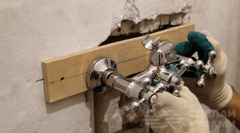 На последнем этапе останется только закрепить это всё к стене. Подробно о том, как качественно установить смеситель в ванной своими руками, смотрите в видеоролике на сайте.