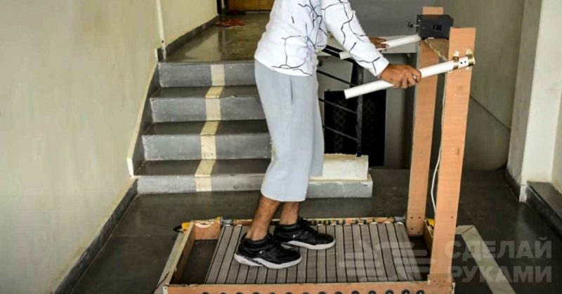 Самодельный подъемник легко можно разобрать, чтобы переместить в другую комнату.