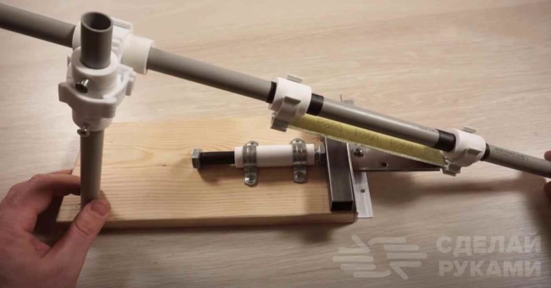 Изготавливаем все необходимые элементы конструкции, затем собираем все до кучи, и самодельное приспособление готово к работе.