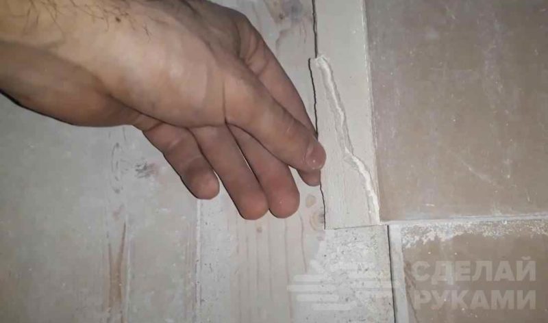 При переноске гипсокартона (или при его падении на пол) иногда отламываются небольшие кусочки.