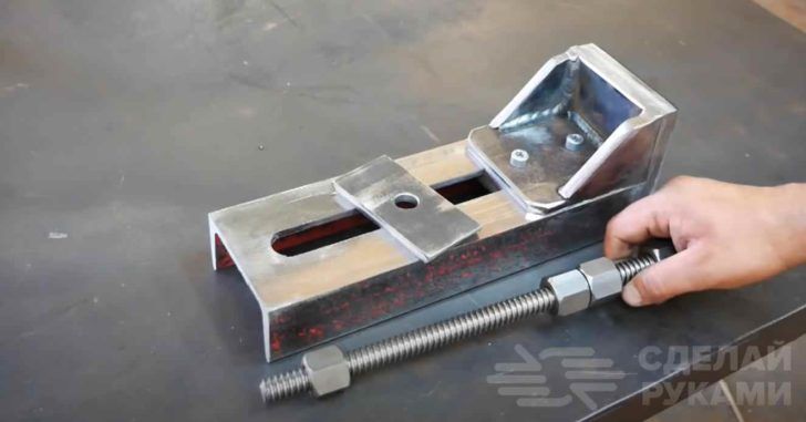 Чтобы заготовка в процессе резки была неподвижной, дополнительно используются прижим, изготовленный из болта. В качестве направляющей для болта используется гайка.