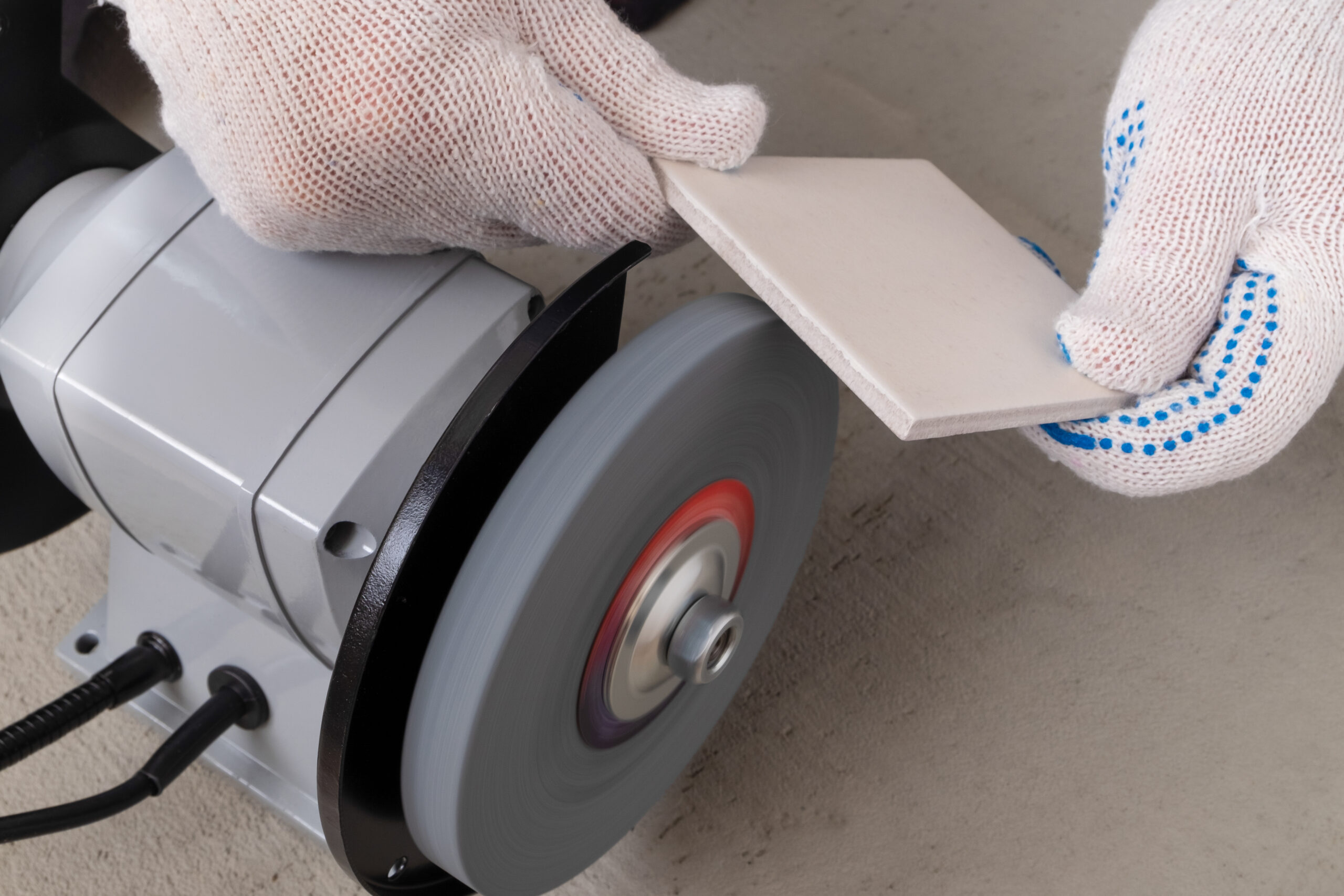 На следующем этапе из листового металла вырезаем еще две детали. Обрабатываем их на шлифовальном станке. Привариваем к уголкам.