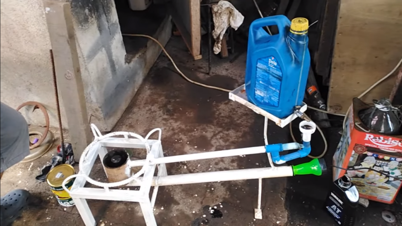 В качестве ёмкости можно использовать металлическую или пластиковую тару. В неё надо установить кран, чтобы регулировать подачу топлива.