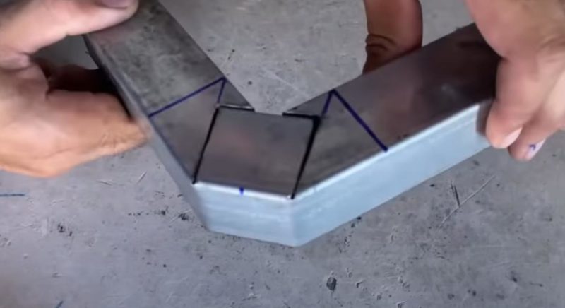 На следующем этапе мастер делает ножки, которые нужно приварить к нижней части короба. Для этого используются четыре металлических уголка.