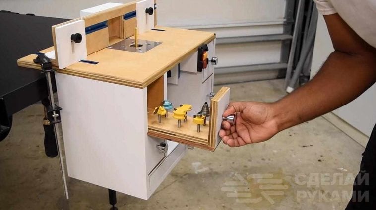 В данном случае нам снова потребуется лист фанеры толщиной 20 мм. Вырезаем заготовку необходимого размера, и основание для самодельного станка готово.