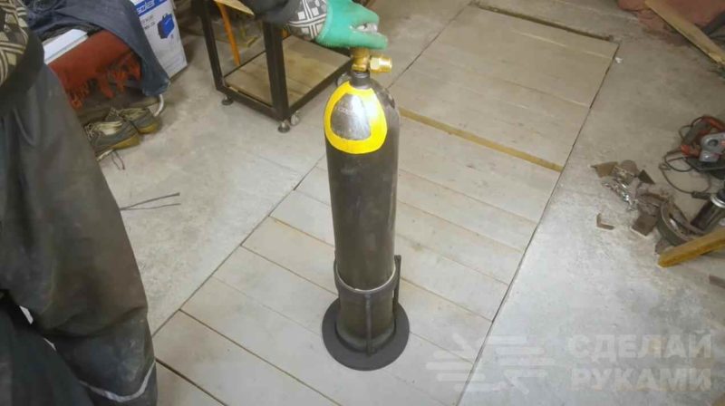 Далее привариваем две стойки из профтрубы, к которым крепится металлическая пластина. Зачищаем сварные швы.
