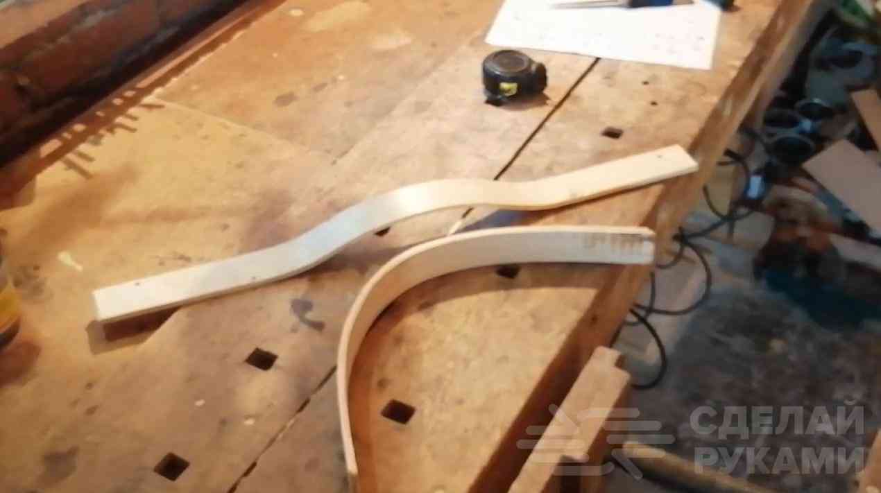 После этого соединяем две части приспособления вместе. Самодельная подставка готова.