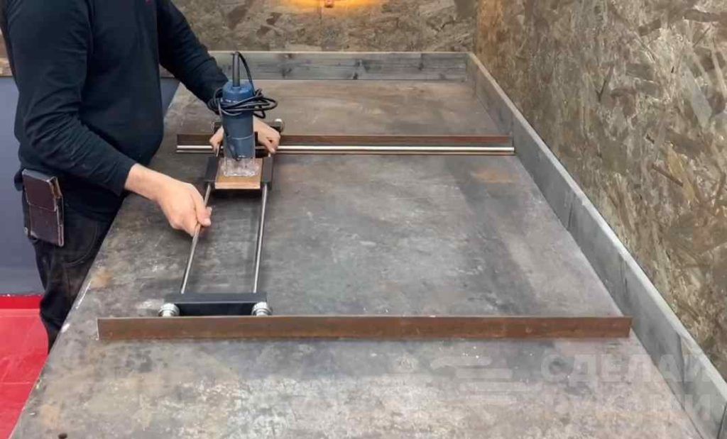 Далее отрезаем от фанеры заготовки необходимых размеров. Кромки заготовок, которые будут примыкать друг к другу, нужно обрезать под углом 45 градусов с помощью ручной циркулярки.