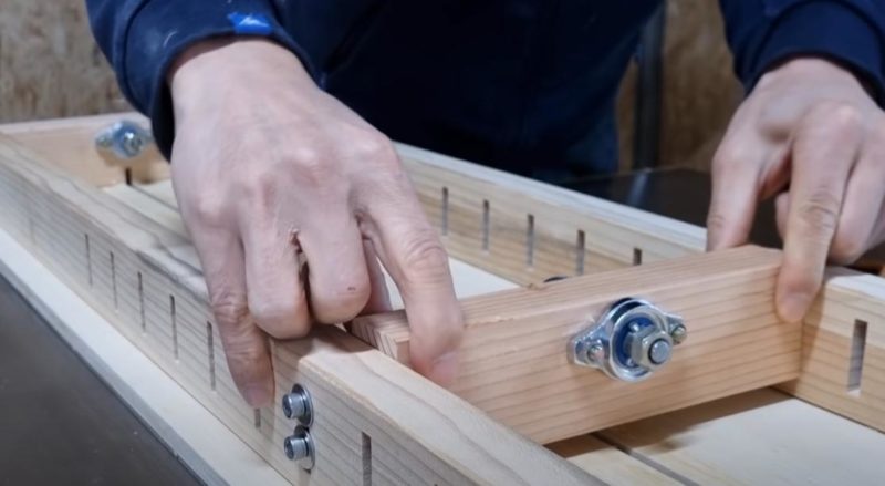 Особенность конструкции заключается в том, что внутри каждого «посадочного места» находится деревянный шкант, который выступает в роли зажима.