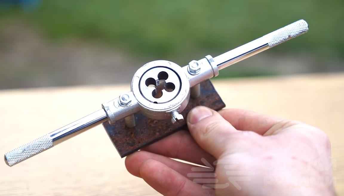 Первым делом у болта нужно будет отрезать шляпку. Затем мастер нарезает нужное на куски прут металла подходящего диаметра. Далее необходимо сварить деталь Т-образной формы — основной элемент самоделки.