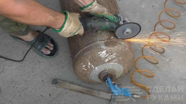 Первым делом необходимо будет с помощью болгарки (УШМ) отрезать нижнюю часть ведра вместе с дном.