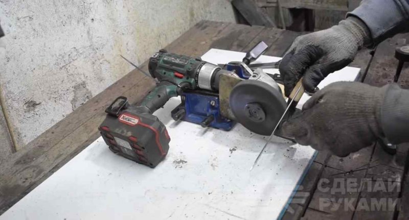 На следующем этапе зажимаем заготовку в слесарных тисках и обвариваем шов. Зачищаем его болгаркой с лепестковым кругом.