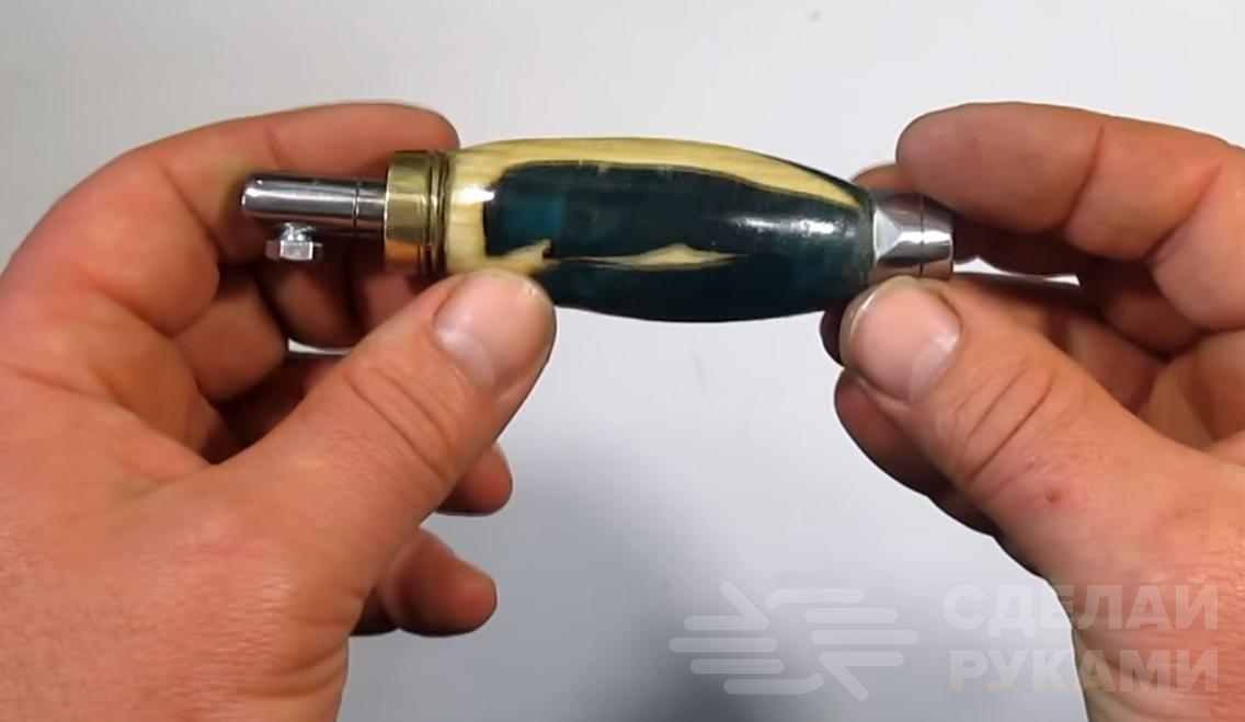На том же токарном станке из обычного деревянного бруска автор вытачивает барабан нужного диаметра. А потом необходимо будет приклеить кусок липучки, который автор отрезает от оставшейся части насадки.