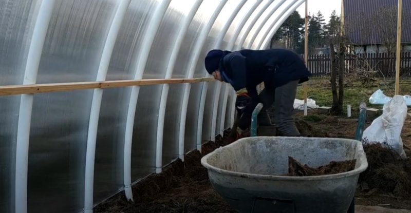 В завершении останется только накрыть собранную теплицу поликарбонатом или тепличной пленкой.