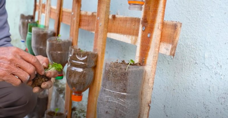 В землю вбиваем отрезанные по размеру прутки арматуры и выставляем их таким образом, чтобы они входили в клипсы.