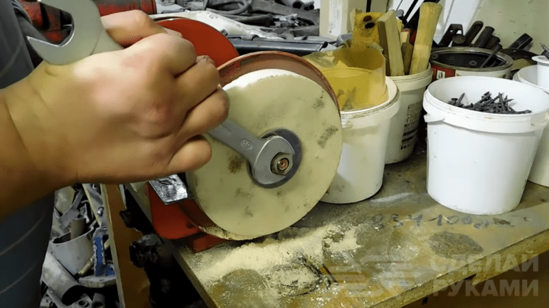 Из куска текстолита или фторопласта (материал должен быть плотным и не впитывать влагу) вырезаем крепление для валика. Сам валик делаем из нержавеющей трубы диаметром 50 мм — длина трубы может быть разной, в зависимости от ширины используемого ведра.