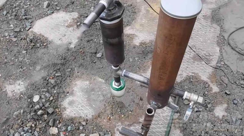 От задвижки отступаем расстояние, равное длине зольника (вместо с болтом и воротком) и высверливаем в этом месте сквозное отверстие под удлиненный сгон на ¾.