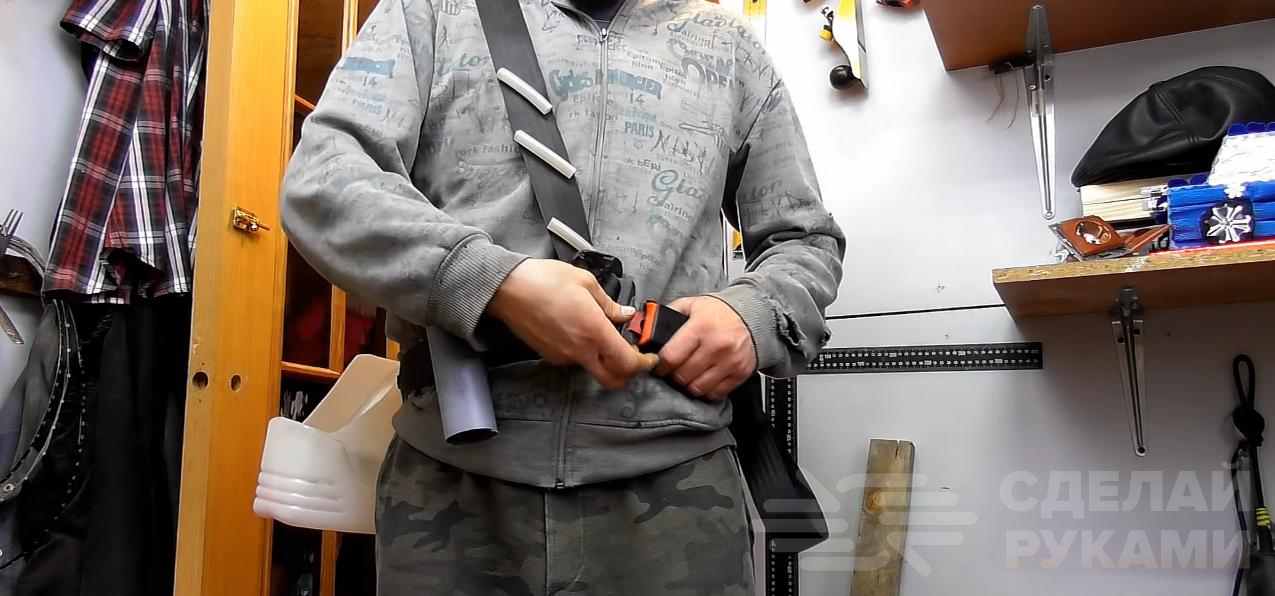 Но прежде чем сверлить отверстие, с обратной стороны дверцы обязательно закрепите кусок доски или фанеры, зафиксировав его струбциной. Это нужно для того, чтобы при сверлении не вырвать кусок ДСП с обратной стороны дверцы.