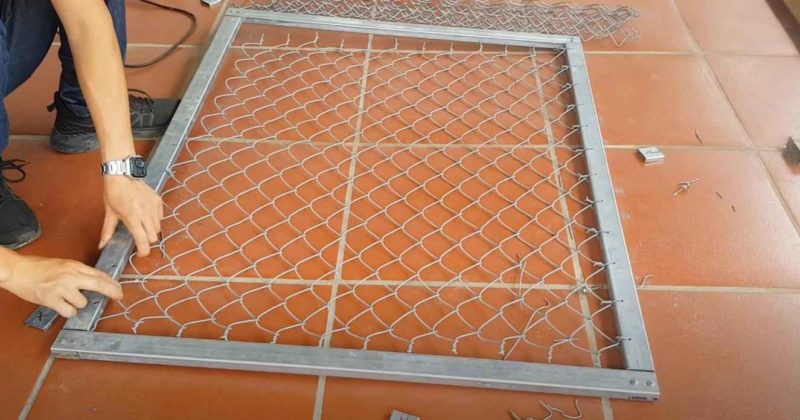 На следующем этапе с помощью болгарки мастер разрезал профильную трубу по разметке на две одинаковых части.