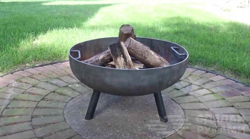 В боковой стенке подставки из бочки вырезаем отверстие, чтобы можно было поместить внутрь чашу с топливным «брикетом», который автор изготовил самостоятельно из картона.