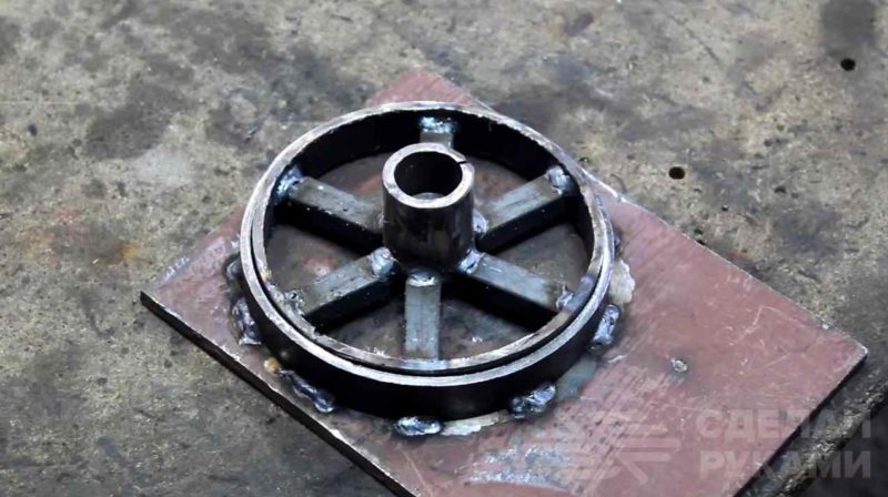 Первым делом отрезаем кусок металлической полосы подходящей длины. Затем сверлим в заготовке два отверстия, и привариваем гайки.