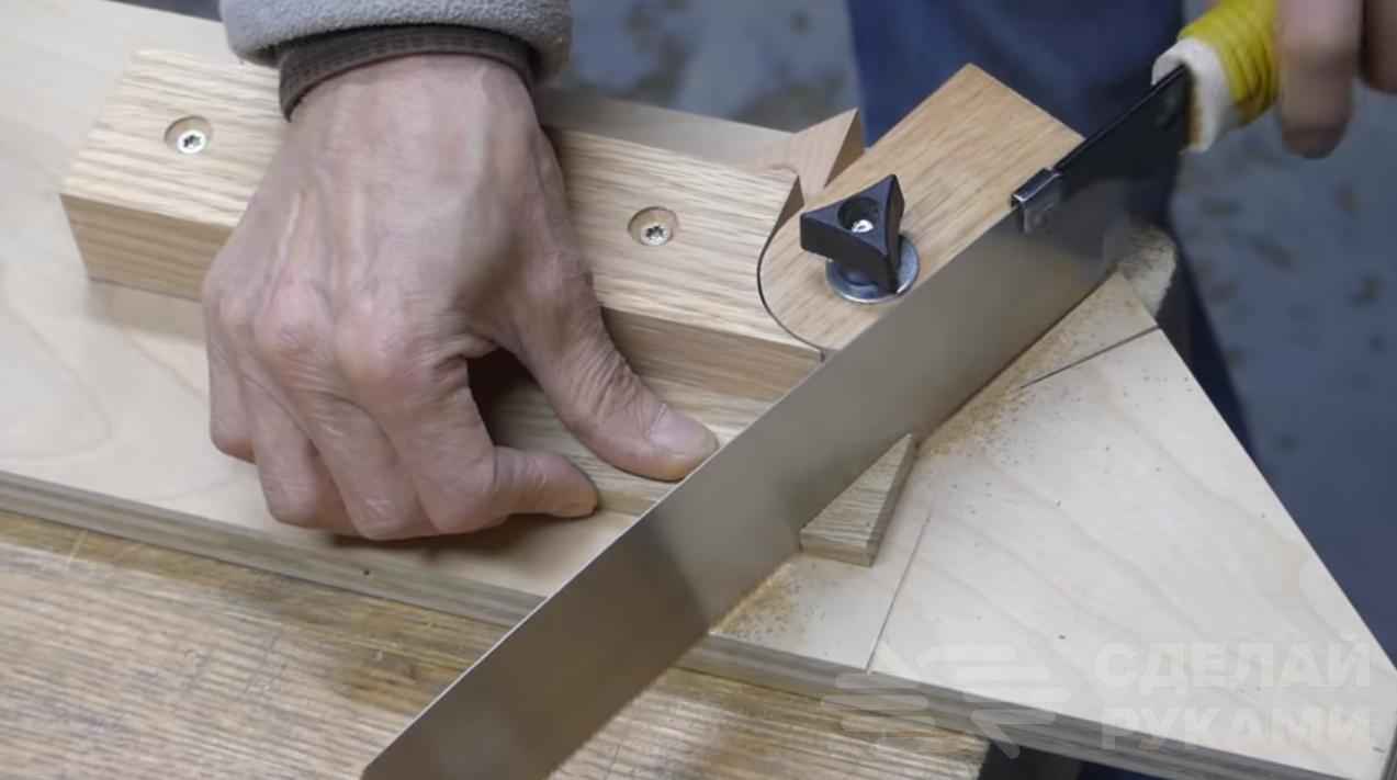 Мастер использует настольный мини держатель для удерживания листов фанеры и дверей на столе в вертикальном положении. И приспособление отлично справляется со своей задачей.