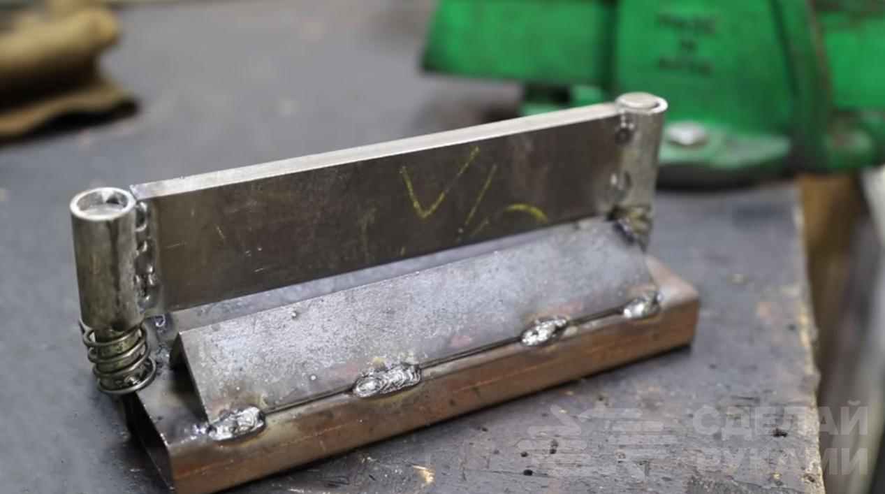 Потом останется только приклеить ножки к столику, все еще раз отшлифовать и покрыть лаком или минеральным маслом. Подробно о том, как сделать переносной разделочный столик с металлическим подносом, смотрите в видеоролике на сайте.