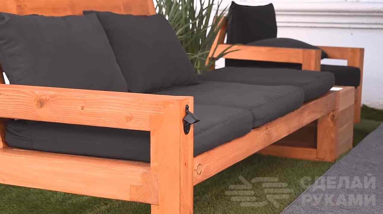 Подробно о том, как сделать практичный и стильный диван для отдыха на улице, можно посмотреть в видеоролике на сайте.