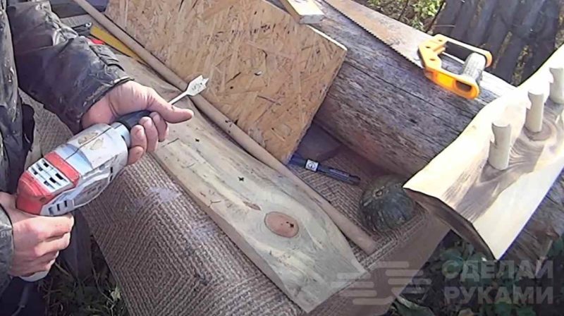 В подготовленных брусках необходимо просверлить по одному отверстию с каждого края, отступив от торцов по 2-3 см. Затем соединяем бруски с помощью шпилек.