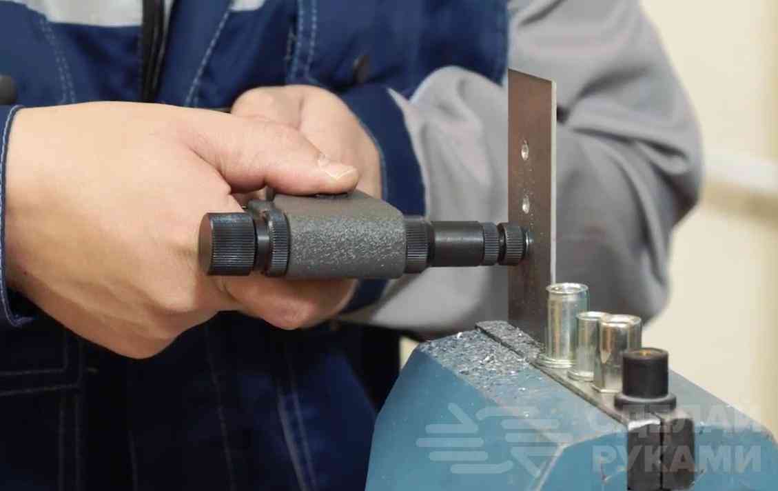 К одной из досок ламината мастер крепит лист нержавейки толщиной 1 мм и прижимную планку, которая тоже сделана из нержавеющей стали.