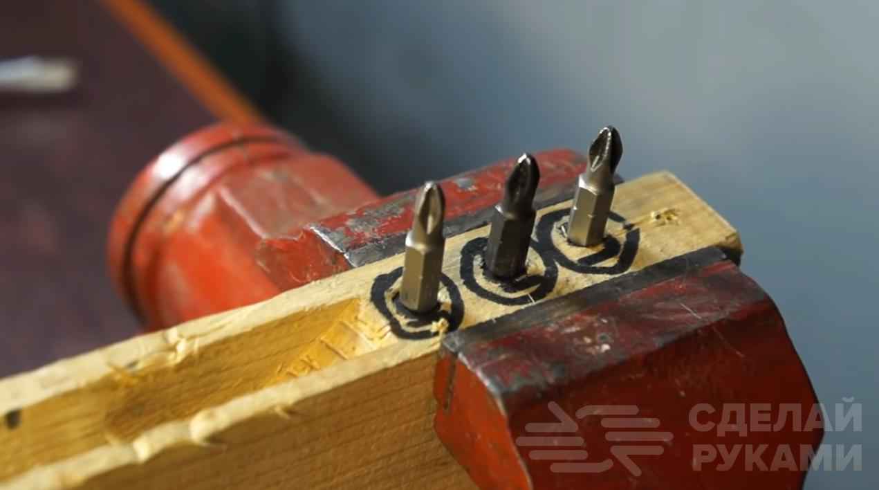 В первую очередь нужно срезать часть деревянных ручек на паяльниках, чтобы их можно было состыковать друг с другом. После этого паяльники соединяются вместе, а деревянные ручки перематываются изолентой.