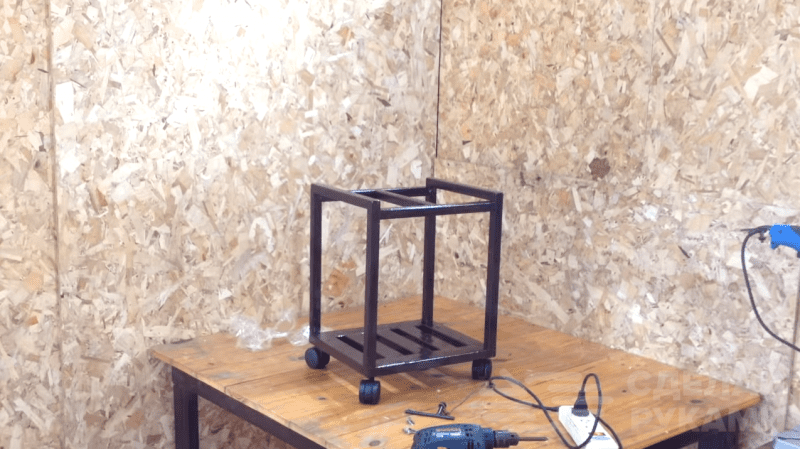 На последнем этапе работ собираем все детали в единую конструкцию. В боковых стенках профиля вырезаем два треугольных клина. Одна сторона должна быть под 90, вторая — под 45 градусов. Это будет простой упор для резки металла болгаркой в двух положениях.