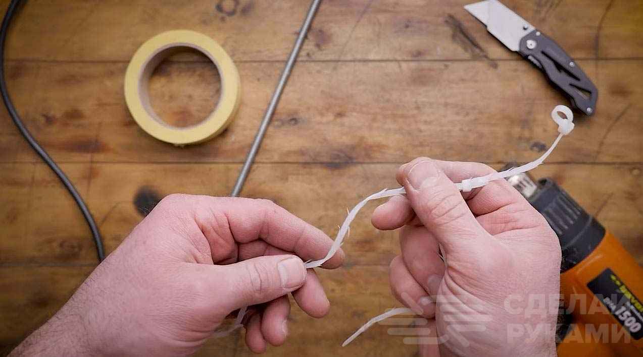 К отпиленной полосе из фанеры приклеиваем параллельно друг другу две узкие полоски, оставив между ними небольшое расстояние. Потом автор приклеивает к заготовке металлическую линейку.