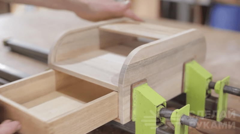 Потом на ленточной пили или электролобзиком вырезаем из этих кусков два круга, в одном из которых вырезаем «сердцевину», чтобы получился «бублик». Склеиваем две заготовки вместе с помощью столярного клея.