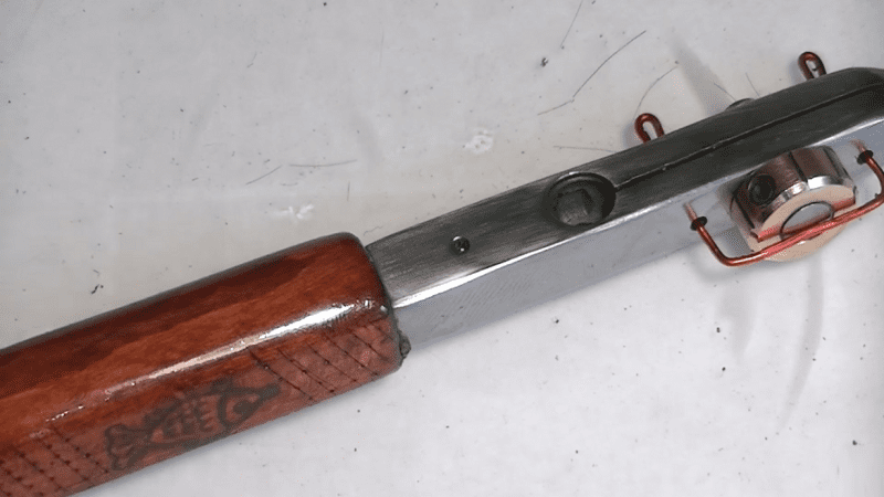 Приступаем к работе. От хвостовой части перового сверла необходимо отрезать небольшой кусок. Конец заготовки затачиваем на электроточиле, как показано на фото ниже.