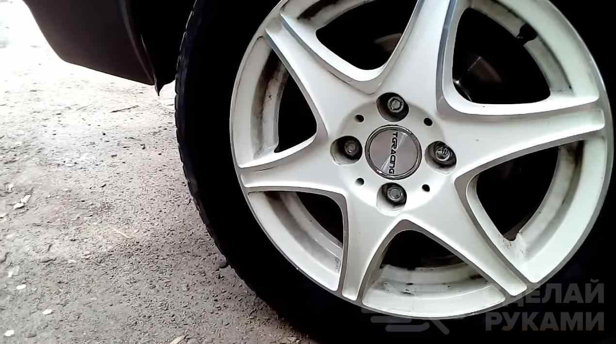 Далее необходимо зачистить профильную трубу от ржавчины и грязи, потом обезжирить и покрасить. После этого на болты автор надевает колеса.