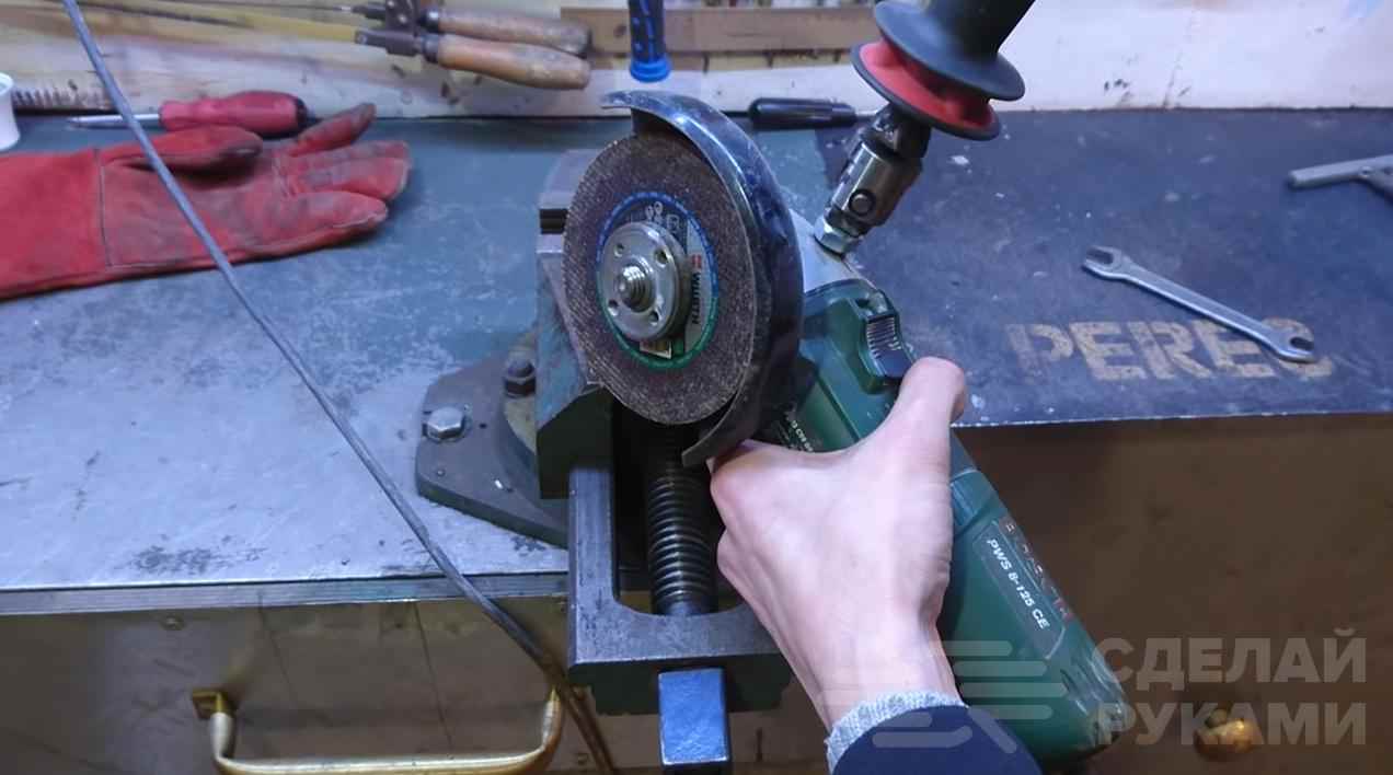 Затем отрезки уголка нужно будет согнуть, чтобы получились заготовки Г-образной формы. Место соединения необходимо проварить. Сварные швы зачищаем болгаркой.