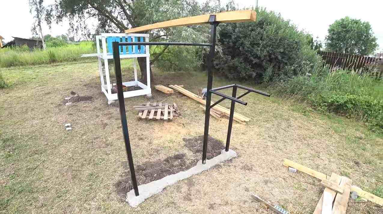 Далее крепим собранную систему к балкам под крышей (в беседке, на террасе) или стойкам, которые установлены по периметру зоны отдыха или летней площадки.