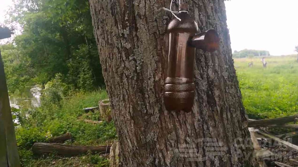 Используя электропаяльник или острый нож, необходимо сделать 2-3 прорези в горлышке бутылки. Таким образом, даже закрутив крышку, вода все равно будет просачиваться.