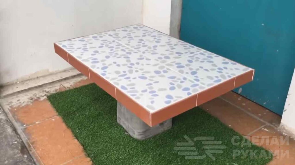 Например, оригинальный обеденный столик можно сделать из остатков плитки и бетона. Причем можно использовать плитку одного цвета, так и разных оттенков, добиваясь идеального сочетания.