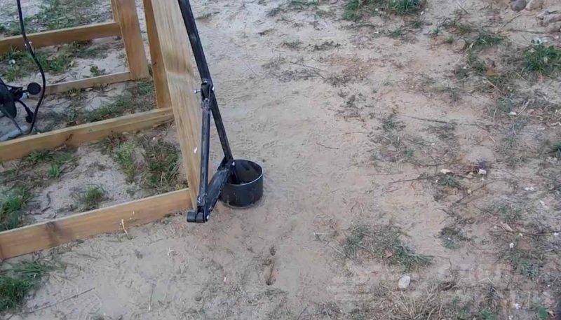 Далее необходимо сделать еще одну деталь. Для ее изготовления используется кусок металла и петля. Потом привариваем ее к профильной трубе, предварительно вырезав в ней паз.
